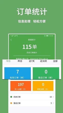 5. 订单统计、每日订单数量、订单收入统计清晰;