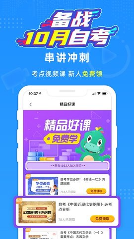 自考过啦app是专注于成人学历考试的一站式服务,涵盖自学考试、远程教育、各种教育形式的考试,涵盖人力资源、行政管理、会计、工商、汉语言、法律、市场营销、学前教育、英语等全国热门专业。独创有针对性的学习模式,优化考生学习方案,个性化定制动态推送,是移动改变学习的先行者,也是自考过关必备的神奇工具。