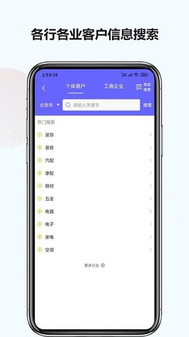 1、行业搜索,也可以根据自己的行业,对于搜索到的客户,可以快速联系。
