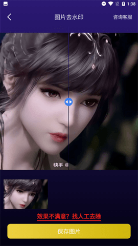 ·处理后,可直接形成原图与效果图的对比图。直接拖动滑块来比较原始图片和效果图片