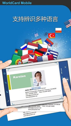 -支持英语、汉语、日语、韩语等25种语言,手机拍摄名片,立即准确识别。
