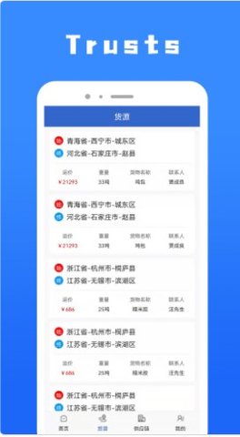 1.Trusts app是一个互联网智能的货物运输和配送平台。
