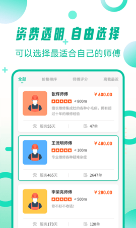 2.可通过平台直接下单、预约维修,所有师傅均合格;