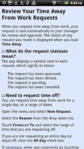 Dayforce是一款员工管理APP,可以使用该APP轻松管理公司员工,查看员工的考勤信息,以及随时休息,在线处理员工请假申请,管理员工的各种状态的记录、同意、待处理、拒绝等休假请求区分,查看更加方便,还可以根据工作需求安排工作时间,避免时间冲突,工作管理更方便,还可以让员工的工作计划,这里还可以及时通知公告,实时发布最新的工作通知,员工立即可用,信息更高效,可以提高工作效率,还可以更好地跟踪工作任务完成状态,了解每个员工的工作信息。