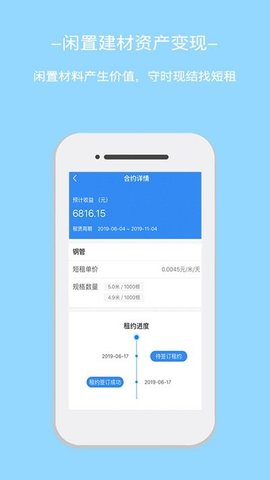 星享租是建材租赁企业与建筑工程企业实时共享材料租赁、购销信息的综合平台。星享租主要服务于建筑行业的双边客户。以脚手架租赁交易为切入点,将建筑行业闲置资源与互联网思维相结合,提高资源对接配置效率。