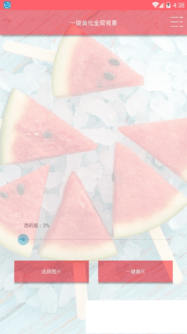 3.然后选择一键美化即可,可根据自己的喜好调整透明度。建议美化成功后及时锁定软件后台,否则手机安全管家会有可能在后台关闭软件。