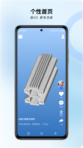 3、喜欢、评论、关注、收藏、海量3D模型的刷、缩放、缩放、平移、旋转、随意切换,发现工业产品的技术美学