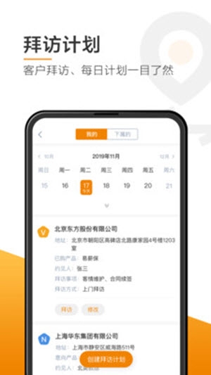 2、从商机到客户拜访都可以通过手机实现。它包括计划拜访、打卡地点、上传照片、填写拜访记录等。帮助销售经理跟进流程可视化.