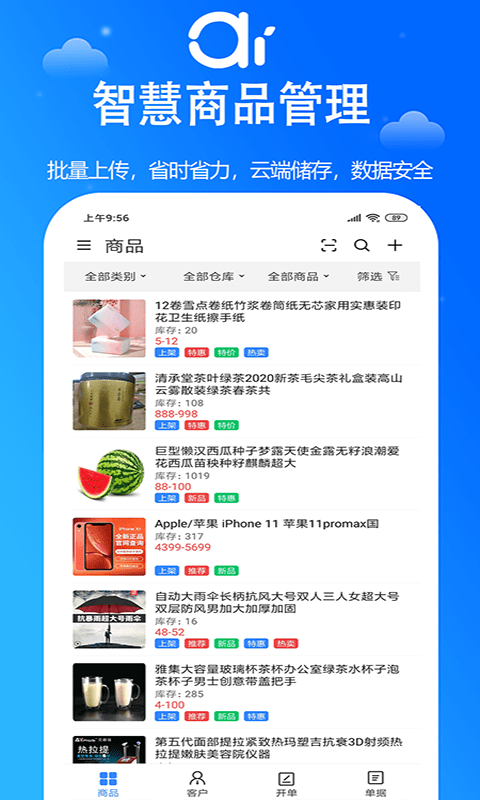4、智能采购商品,销售与采购可同步进行,使您可以随时随地保持足够的库存