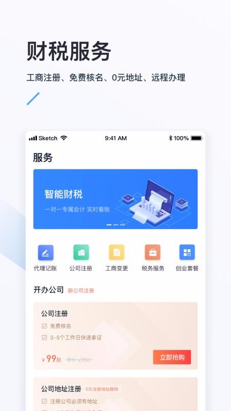 这款软件推荐给大家,欢迎下载使用,企业变更等增值服务,可以在线完成许多服务的处理 将为您节省更多时间,在线支付定金,购买公司启动包可以直接在线支付定金。