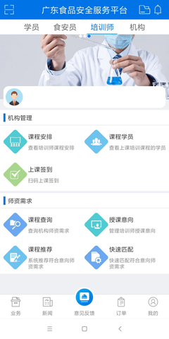 食品安全服务平台app是服务全省食品安全管理者的综合平台,该平台有效应用于食品安全管理人员的培训、考试教育和岗位管理,不断加强对培训机构、教师和食品安全人员的监督。