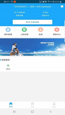 5、免费卫星流量检查帐户状态,充值,预订包裹,报告停止和重新连接,并寻求反馈