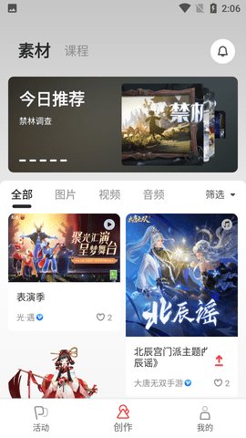 1、为了帮助大家更好的创作,平台准备了很多官方高清素材