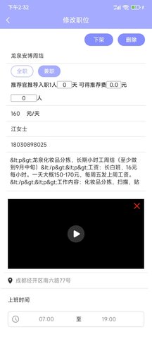 3、在招聘详情页面,您可以查看公司介绍、联系方式、职位内容、职位位置等信息。