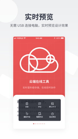 2、支持多平台,可实时预览UI设计文件,模拟真实机器交互效果,随时随地发表评论