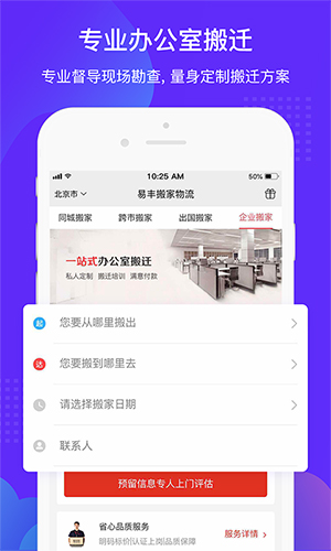 1.易丰搬家物流司机端移居国外,填写订单,享受一对一的专业客户服务。