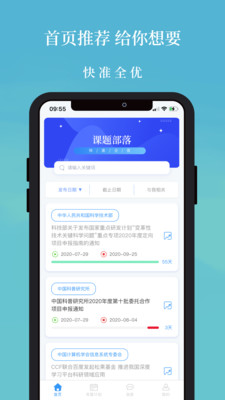 1.课题部落app初期建设目标是汇集各级政府部门资助的科研及应用项目资讯平台。