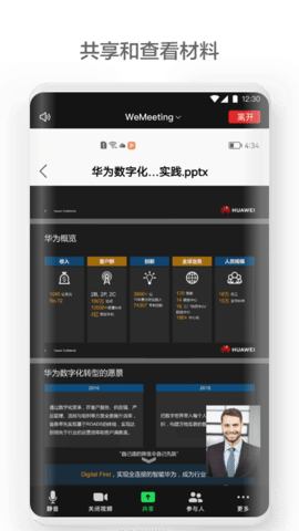 2、让您在任何时间、任何地点和几秒钟内加入WeMeeting会议,并提高会议的效率。从现在开始,移动办公和跨企业会议已不再是一个难题。