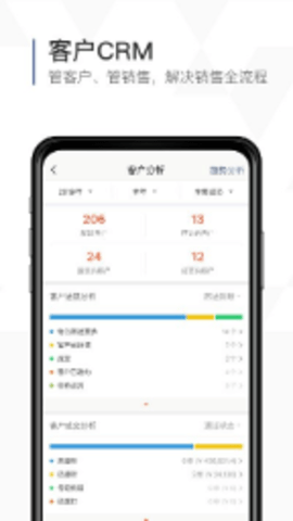 2、智能CRM:以及强大的数据分析功能,客户管理、销售现场监督、销售流程管理(商机、订单、合同、收款)、产品管理,帮助企业更轻松地控制公司业绩和客户