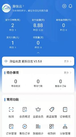 1、通过滁信云店app,用户可以随时随地打开手机查看商店数据。