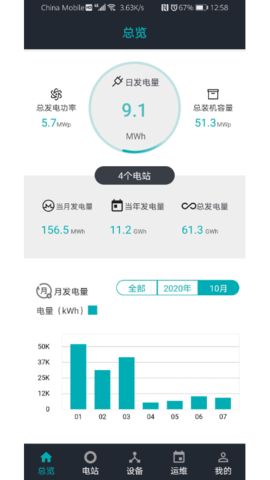 1、设备概况:设备各状态、总装机容量、报警事件等
