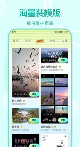 1、视频素材丰厚完好,模板有创意,在这里可以轻松制造视频内容