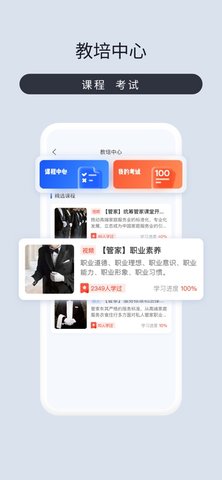 2、平台为您提供专业的管家效劳培训课程和认证考试。