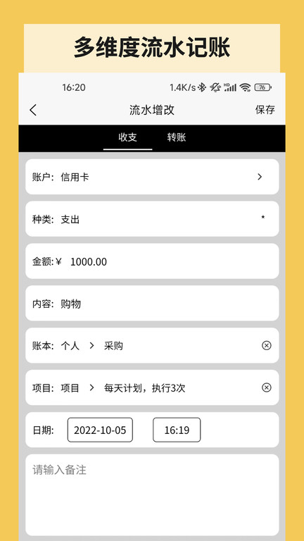 1、创建项目并对账目进行分类管理,画风非常的清新,记下的信息都会按照时间排列。