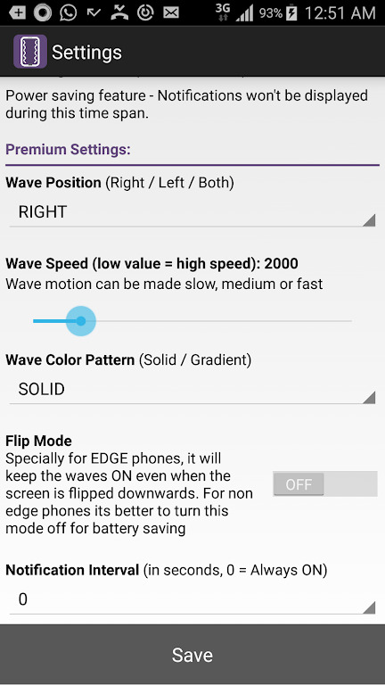 默认的app设置会在50次重复后停止wave动画,但是你会继续看到带有颜色提示的静态wave。这是为了节省电池,因为任何类型的动画都会导致更多的电池使用。你也可以选择让动画无限地运行。调整间隔和重复设置,根据您的愿望。