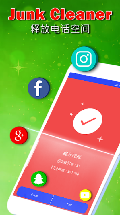 内存清洁大师一款专业的内存助推器,超级简单的Android Ram Booster,可加速内存,并杀死所有多余的后退应用程序,并提高终极Boost Fitness你的设备。