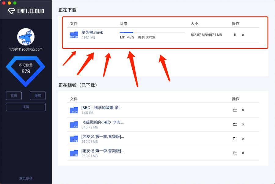 ENFI安卓版让你下载也能赚钱,每日轻松有收益,可下载资源众多,让你也能方便随时查看,一键轻松备份各项文件至云盘,以免下次遗失,也可充值VIP服务,让你下载更极速,更节省时间,资源方便随时分享,让其他人也能看见,喜欢的小伙伴快来下载吧!小编另外推荐几款相同软件:闪电下载、快下。