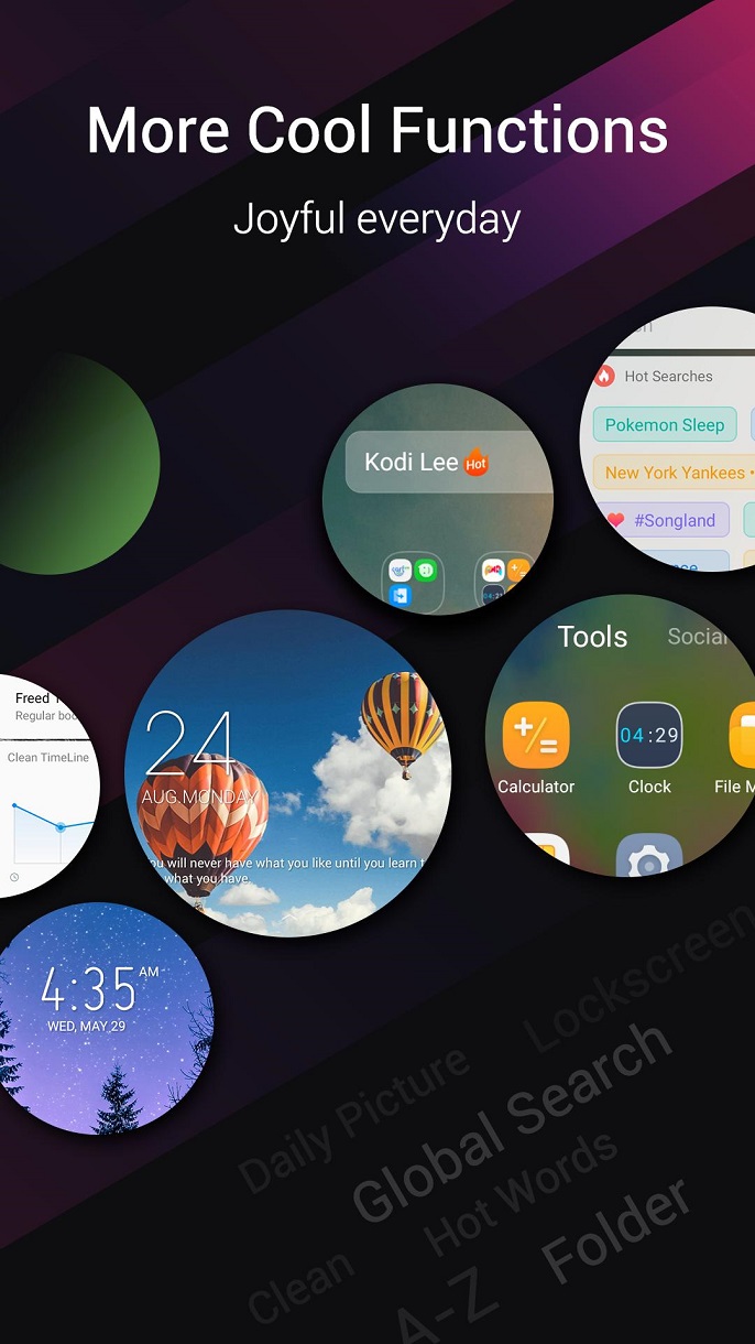 4、更酷炫的功能,AZ搜索/文件夹/美图/清洁/全局搜索+热门词/锁屏......