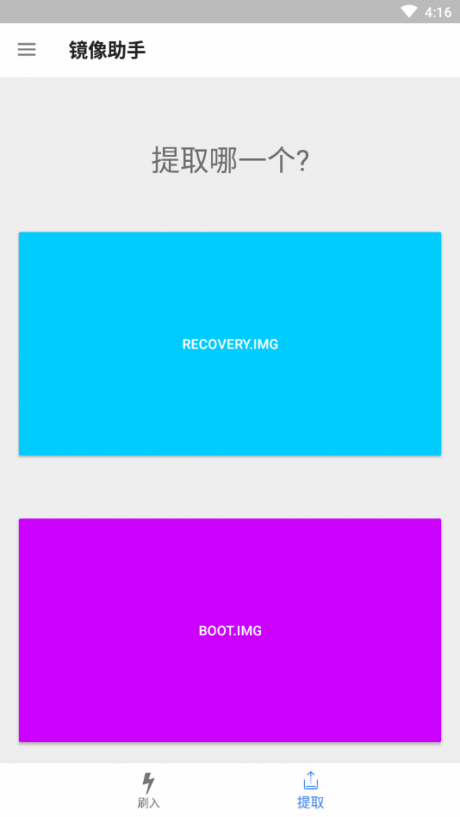 镜像助手app是一款功能强大的手机系统工具,可提取手机系统镜像包,只需获取ROOT权限就可以一键轻松便捷提取Recover系统,非常方便,镜像助手官网版下载后用户可以选择刷入和提取两种模式,这两种模式所拥有的功能会清晰的显示在用户的手机上,用户可以轻松的进行选择使用,帮助用户进行刷机。