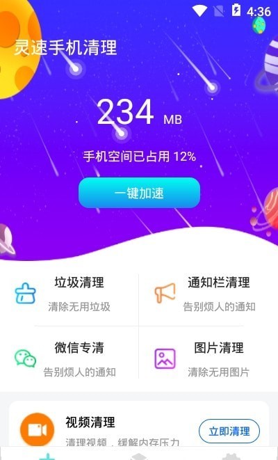 灵速手机清理最新版是一款帮助用户管理手机内存的软件,很多时候我们的手机出现内存不足的提示并不是因为用户所安装的软件占用了所有的内存,而是在使用过程中所产生的缓存垃圾太多,灵速手机清理app下载后能够检测出垃圾所占用手机内存的大小,用户可以进行一键清理。