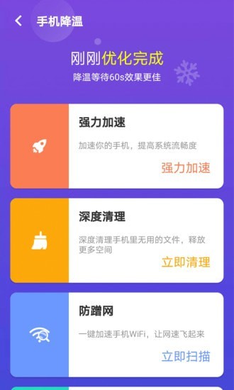3、秒速清理大师下载后还包含了手机降温、强力加速、防蹭网等等功能。