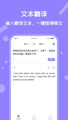 语音翻译宝是一款使用非常不错的在线翻译软件,通过软件就可以在线拍照进行翻译,也支持语音翻译,软件的操作也很简单,通过软件随时都能和外国人进行沟通以及翻译,也能满足很多人的需求,即使遇到自己不会的单词也会进行翻译,快来试试吧。