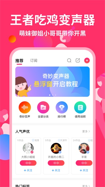 奇妙变声器是一款全新上线的变声软件,这款软件上包含了海量的变声语音包,不管你是想变成萝莉音,还是御姐音,亦或是正太音大叔音等,在这里都能轻松满足,而且app还可以一边说话一边变声,真的是强大有便捷。