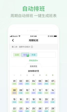 2.简单两步设置,便能准确地在日历上排列出上班时间,查看方便,一目了然。