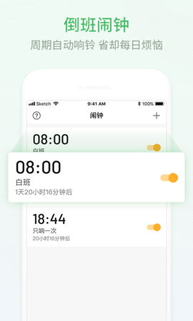 2.界面清爽,没有广告且免费。复杂的排班周期计算和每天手动设置系统闹钟再也不会成为困扰的问题。