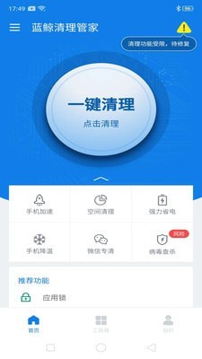 1.加速手机,蓝鲸清理管家下载2021之后一键加速可以清除手机的垃圾。