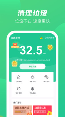 1.趣赚清理下载安装后可以一键扫描内存垃圾,也可以清除手机软件中的缓存垃圾,使内存更大。