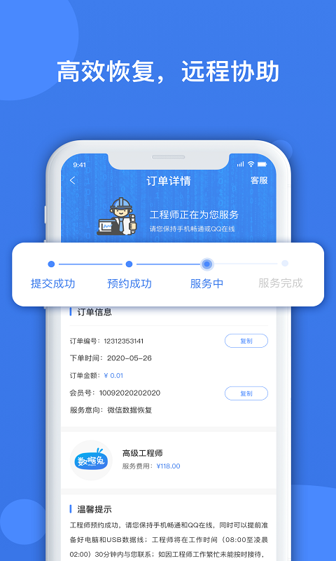 4.提供客服及强大的工程师团队服务,及时为用户的数据保障负责。