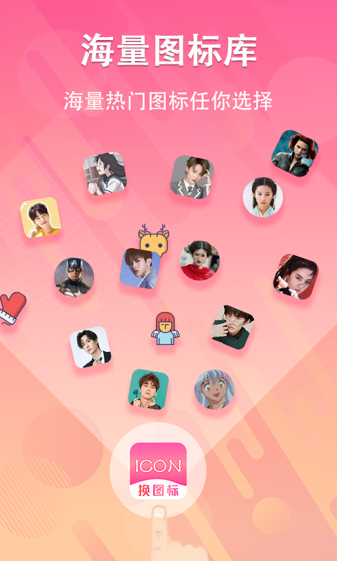 4.热门明星、动漫二次元、游戏图标应有尽用,热门应用个性图标随意替换。