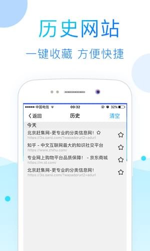 【书签管理】在书签管理界面,用户可以查看历史浏览器记录,用户添加的书签栏,以及离线网页。