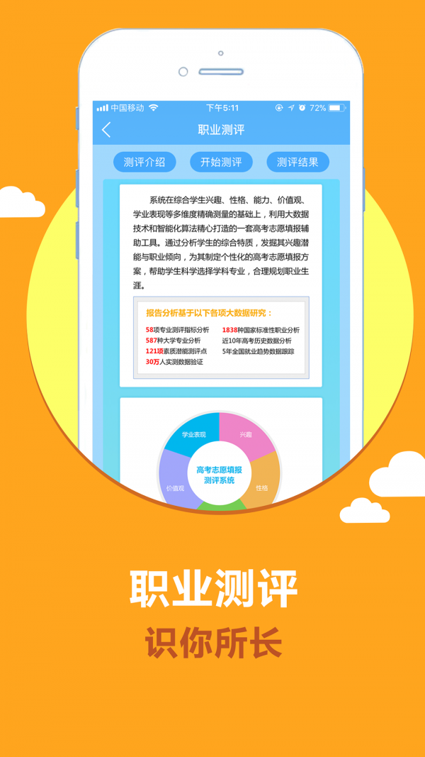 1.云校生报考指南综合学生兴趣、性格、能力、价值观、学业表现等多维度精确测量的基础。