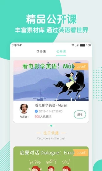 这款软件推荐给大家,欢迎下载使用,在线奖励老师,解锁课程,使学习更有乐趣,帮助用户轻松学习英语,精品公开课,丰富素材库等您体验。