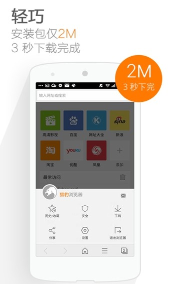 猎豹浏览器极速版提现版方便用户随时在线浏览以及搜索各种问题方便,各种小说以及视频资源随心看,方便用户观看各种想看的资源,丰富用户的日常生活,更有各种安全保护,为你拦截各种危险文件以及各种网页广告,让你上网更安全,更有强大内核功能,让你下载更速度,感兴趣的小伙伴快来下载吧!