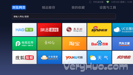 通过遥控器,可以输入网址随意访问任意站点、浏览精选站点以及在搜索框优先搜索视频