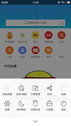 2.软件接入了众多知名网站入口,如百度搜索、新浪新闻、头条新闻、京东购物、淘宝、爱奇艺、酷狗音乐、虎扑体育、腾讯新闻、天猫、唯品会等,为用户提供便捷的上网体验;