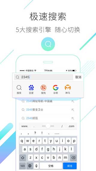 2345手机浏览器,一款极速实用的移动端浏览器,清新的界面,精致的排版,超低内存,跳转速度快,又省流量又不耗时。